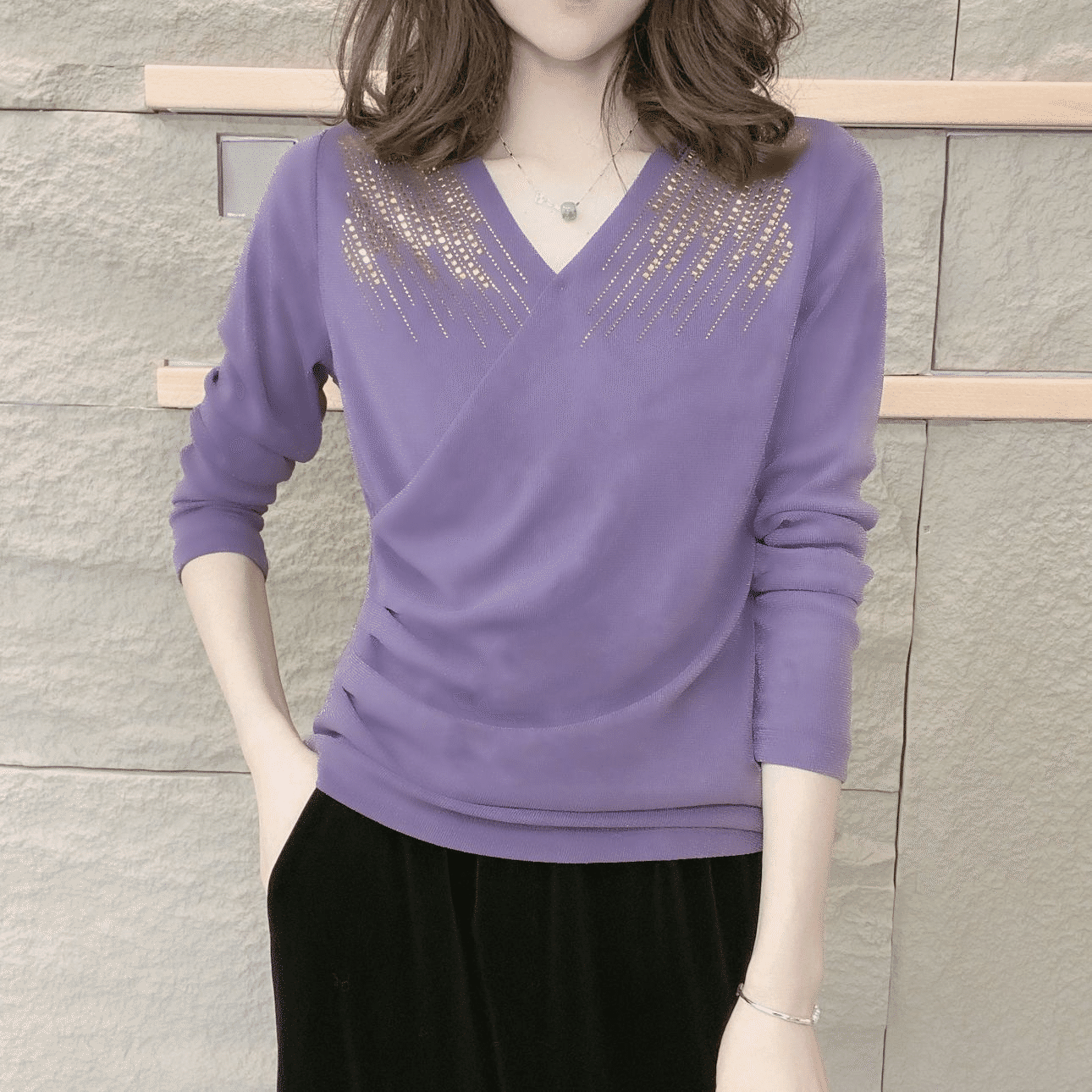 這款小衫太藏肉了!V領燙鑽還那麼好看!