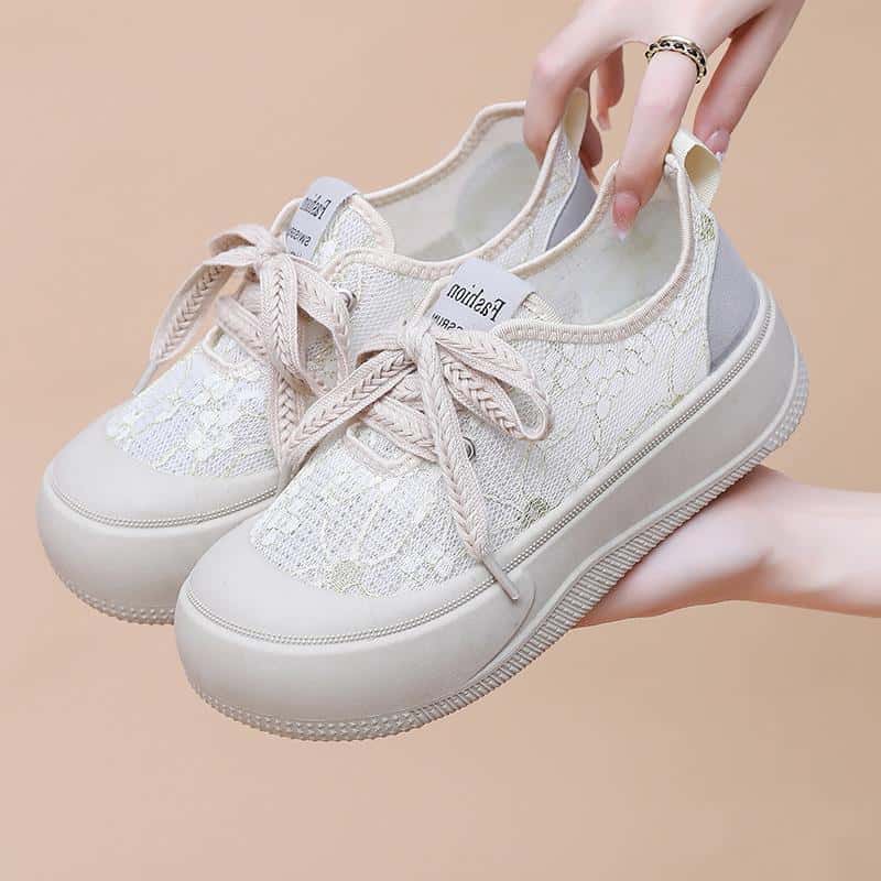 高級感百搭透氣蕾絲面厚底休閒鞋