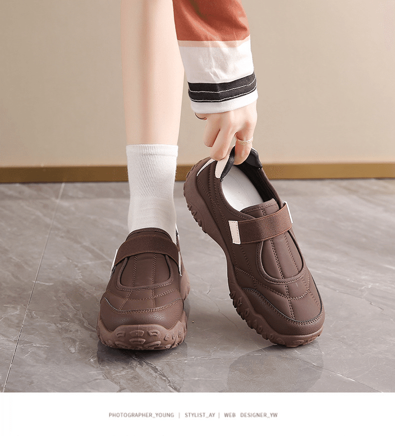 ✨ 魔術貼設計太香啦!一貼就搞定,懶人姊妹狂喜~圓鞋頭把腳包得超舒服,拼色設計簡約又耐看,寬鬆不悶腳☁️ 運動休閒隨意切換,秋季薄款輕盈不悶腳,鞋底防滑紋路穩穩 hold 住各種路面,女孩子們鞋櫃必備
