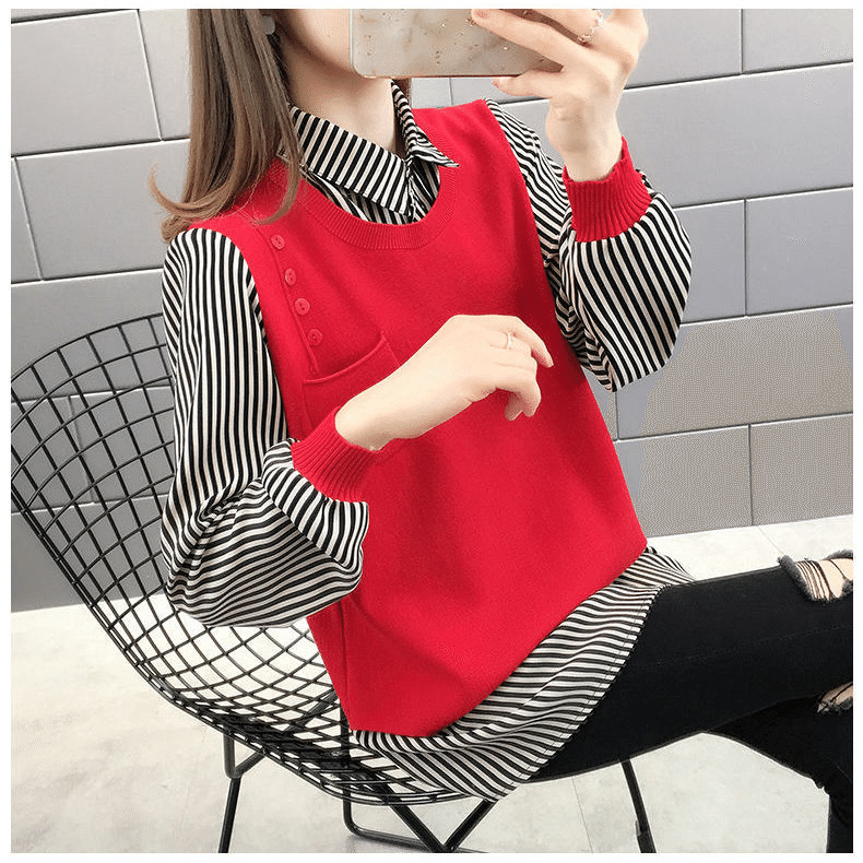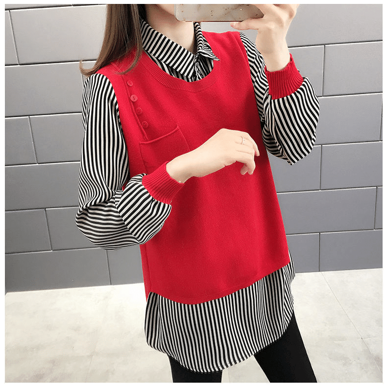 4分鐘前【均碼45-68公斤可穿】韓版假兩件寬鬆針織衫 紅色