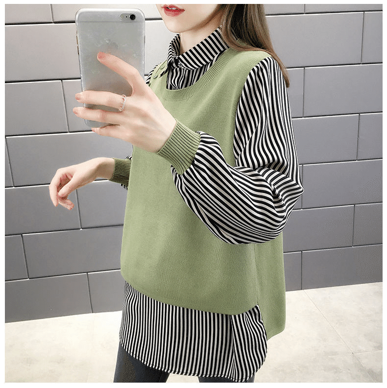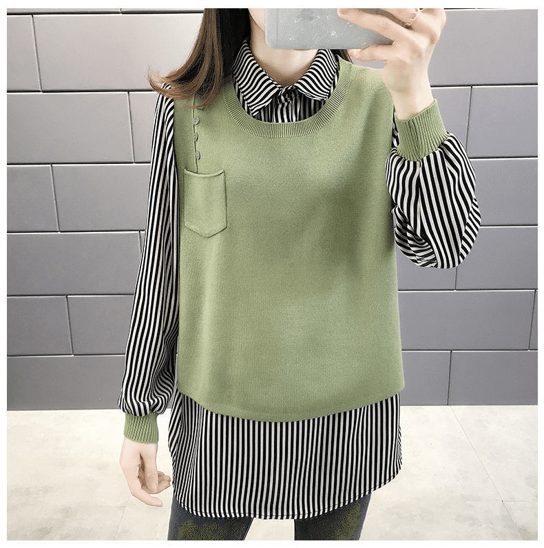 5分鐘前【均碼45-68公斤可穿】韓版假兩件寬鬆針織衫 綠色