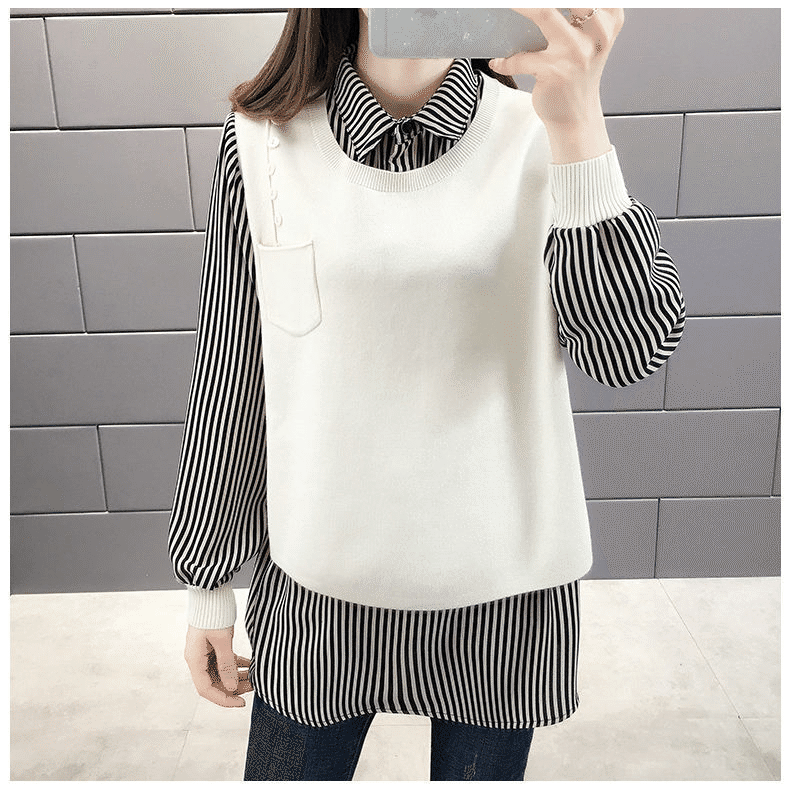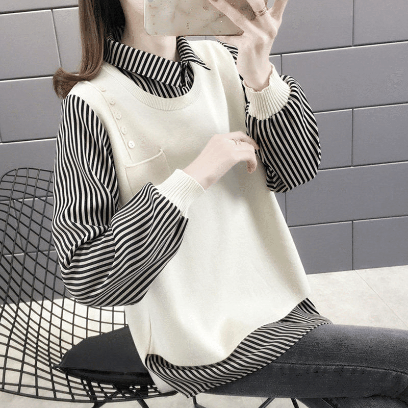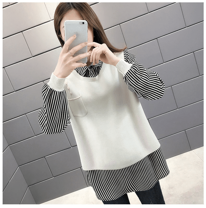 2分鐘前【均碼45-68公斤可穿】韓版假兩件寬鬆針織衫 黑色