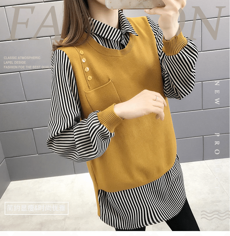 5分鐘前【均碼45-68公斤可穿】韓版假兩件寬鬆針織衫 黃色