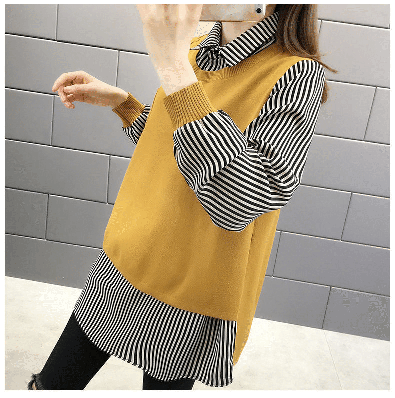 3分鐘前【均碼45-68公斤可穿】韓版假兩件寬鬆針織衫 黃色