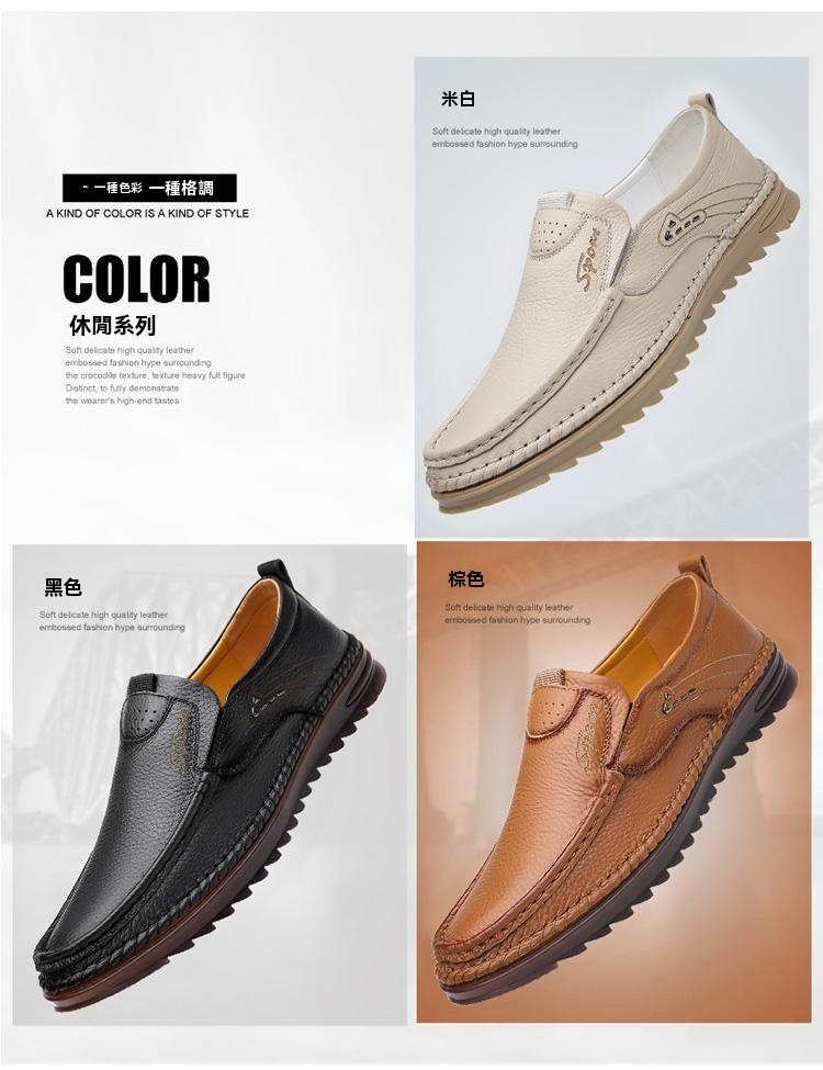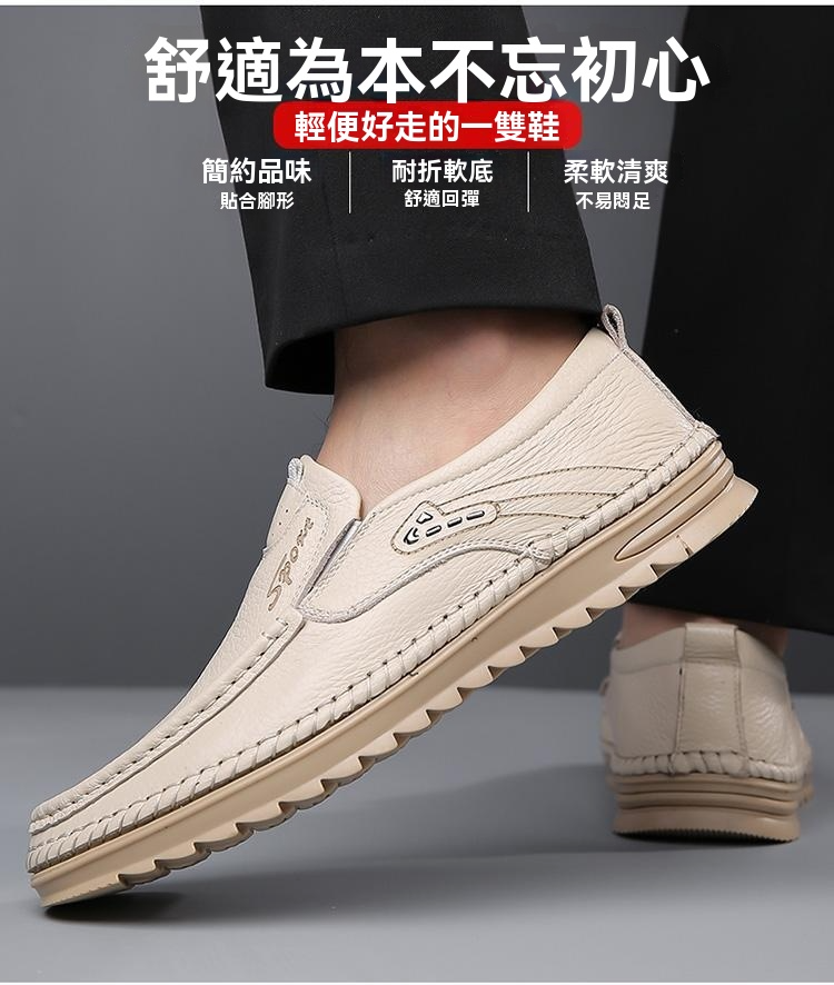4分鐘前【頭層牛皮】男士秋季軟底防滑低幫休閒皮鞋 米白色