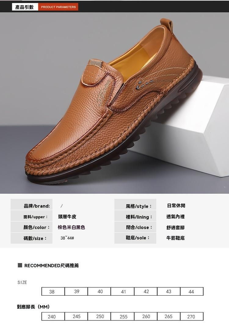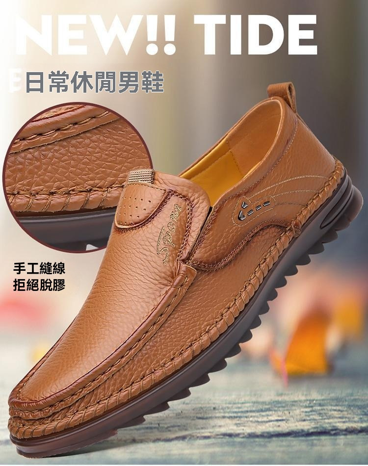 4分鐘前【頭層牛皮】男士秋季軟底防滑低幫休閒皮鞋 棕色