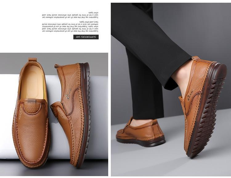 1分鐘前【頭層牛皮】男士秋季軟底防滑低幫休閒皮鞋 棕色