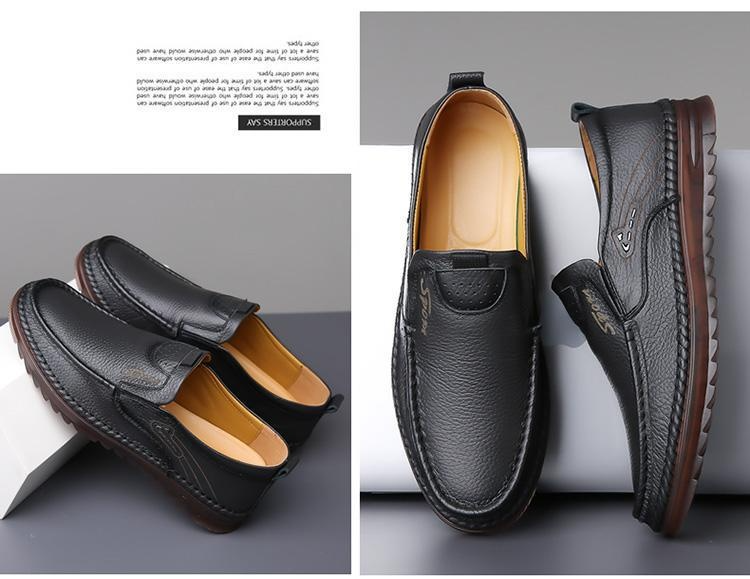 1分鐘前【頭層牛皮】男士秋季軟底防滑低幫休閒皮鞋 黑色