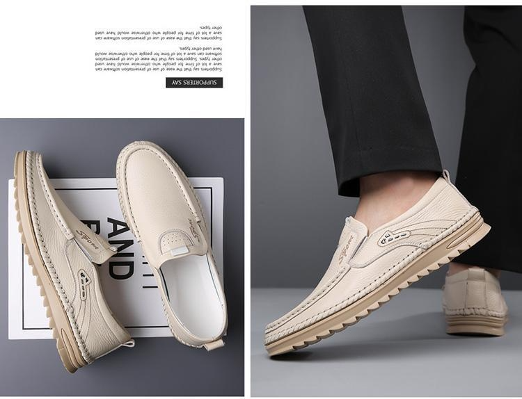 1分鐘前【頭層牛皮】男士秋季軟底防滑低幫休閒皮鞋 米白色
