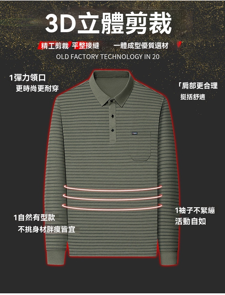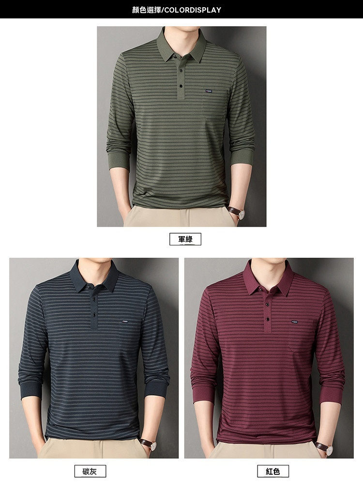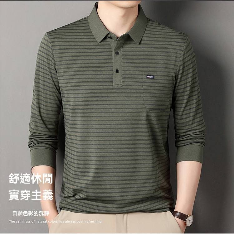 5分鐘前男士秋季條紋翻領POLO衫 兩件 軍綠+卡其