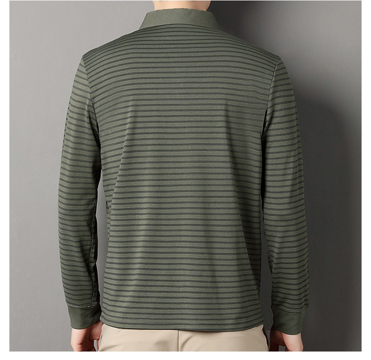 5分鐘前男士秋季條紋翻領POLO衫 一件 軍綠