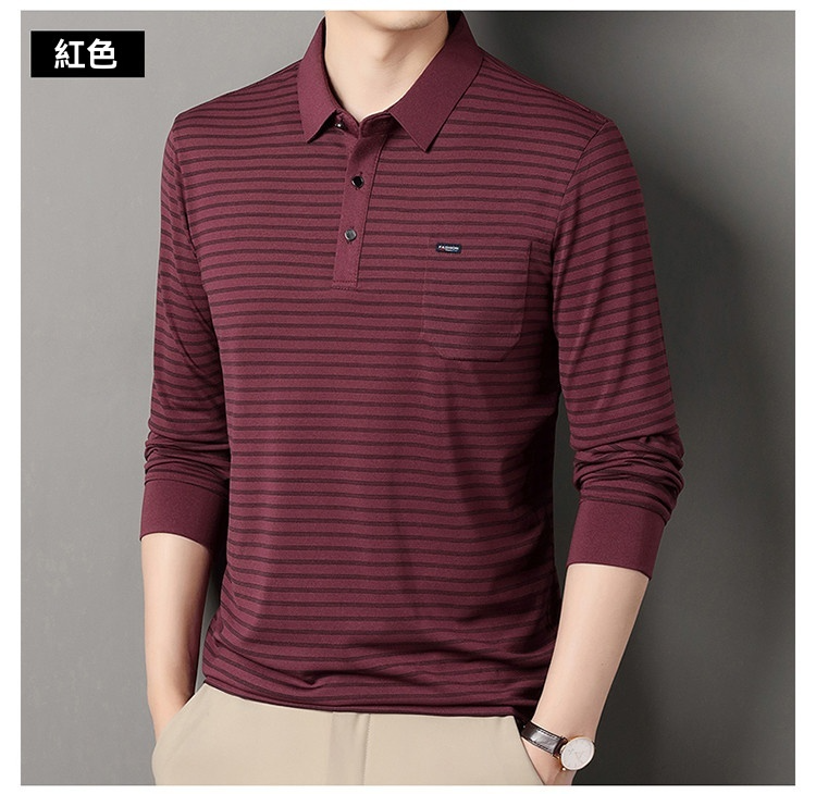 半小時前男士秋季條紋翻領POLO衫 一件 紅色