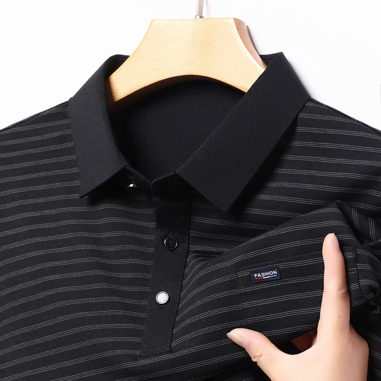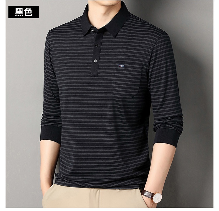 3分鐘前男士秋季條紋翻領POLO衫 一件 黑色