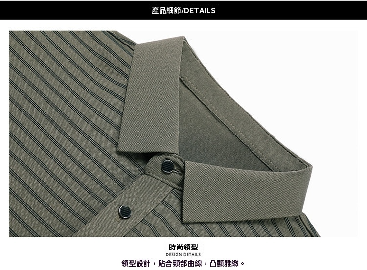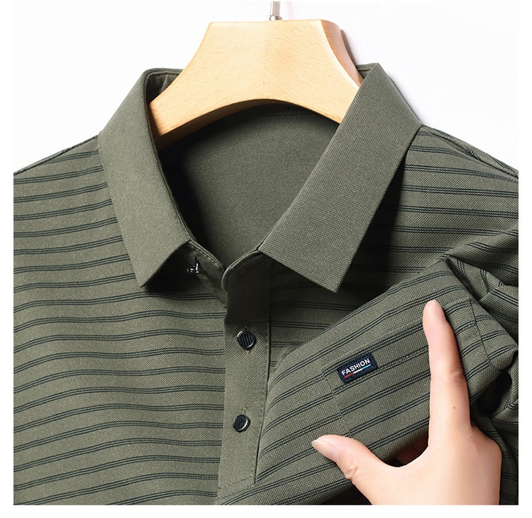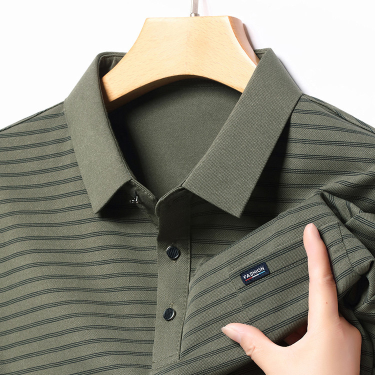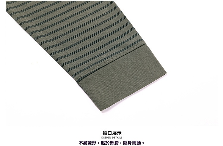 半小時前男士秋季條紋翻領POLO衫 一件 軍綠