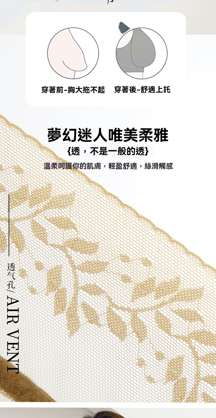 3分鐘前新法式蕾絲吊帶美背性感文胸 淺黃+黑色+卡其