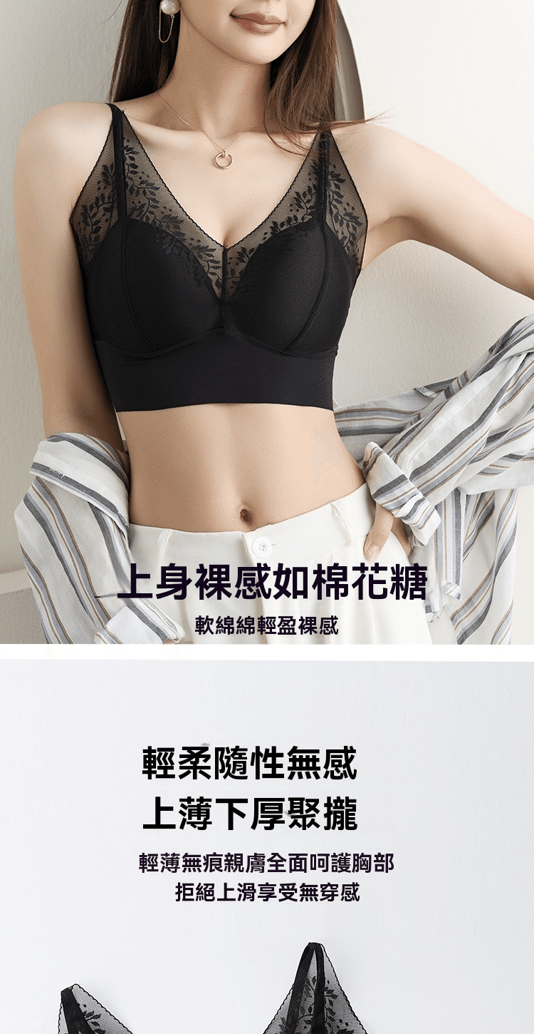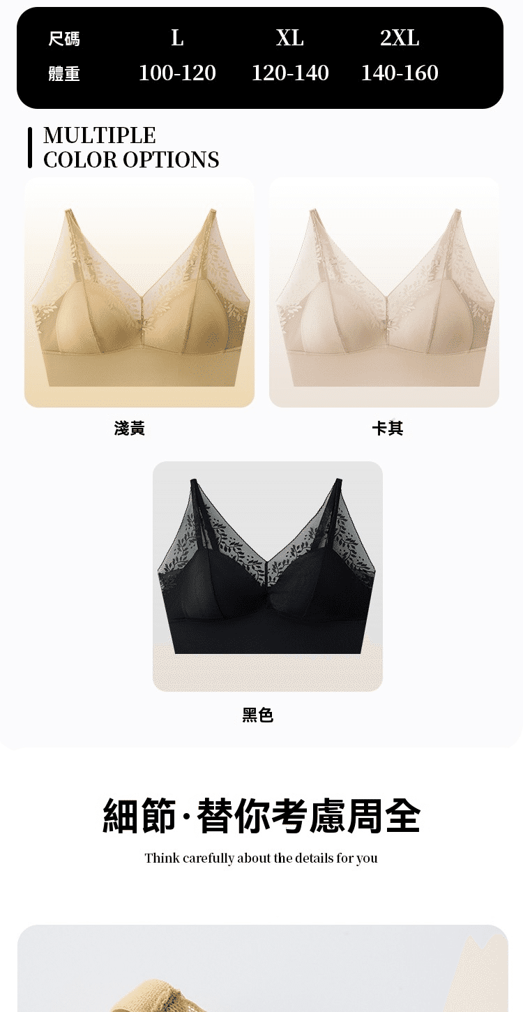 4分鐘前新法式蕾絲吊帶美背性感文胸 淺黃+黑色+卡其