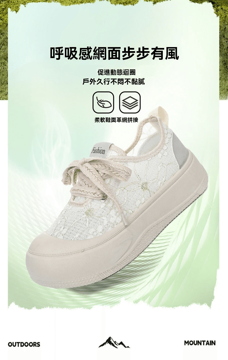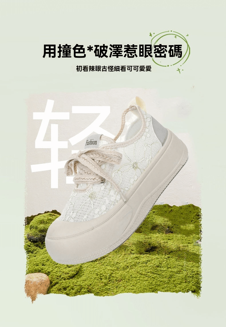 3分鐘前【買一送一】高級感百搭透氣蕾絲面厚底休閒鞋 兩雙 米白色+黑色