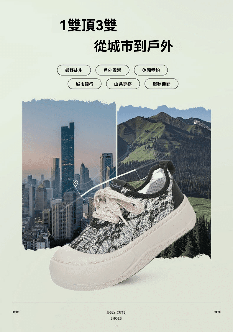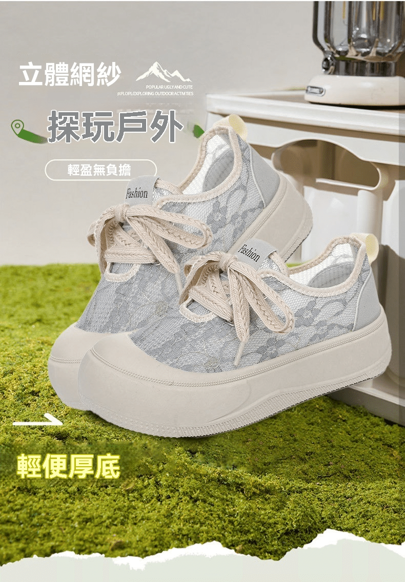 2分鐘前【買一送一】高級感百搭透氣蕾絲面厚底休閒鞋 兩雙 灰色+黑色
