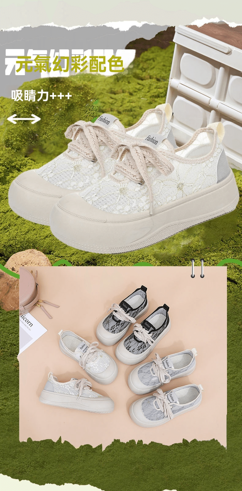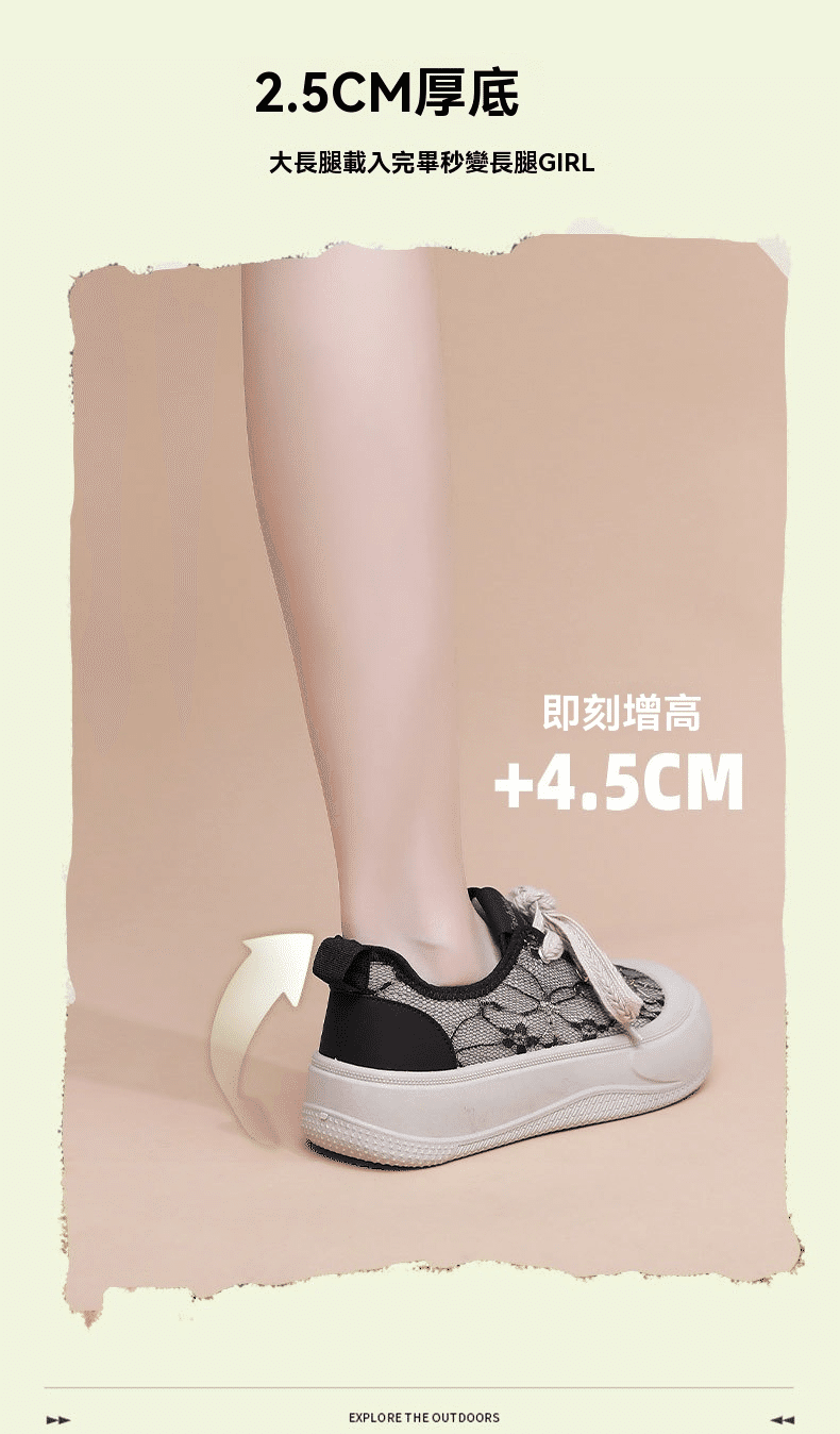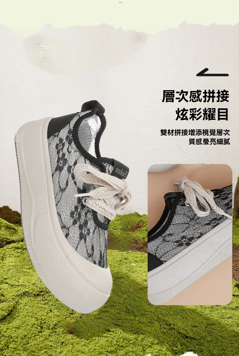 4分鐘前【買一送一】高級感百搭透氣蕾絲面厚底休閒鞋 兩雙 米白色+黑色