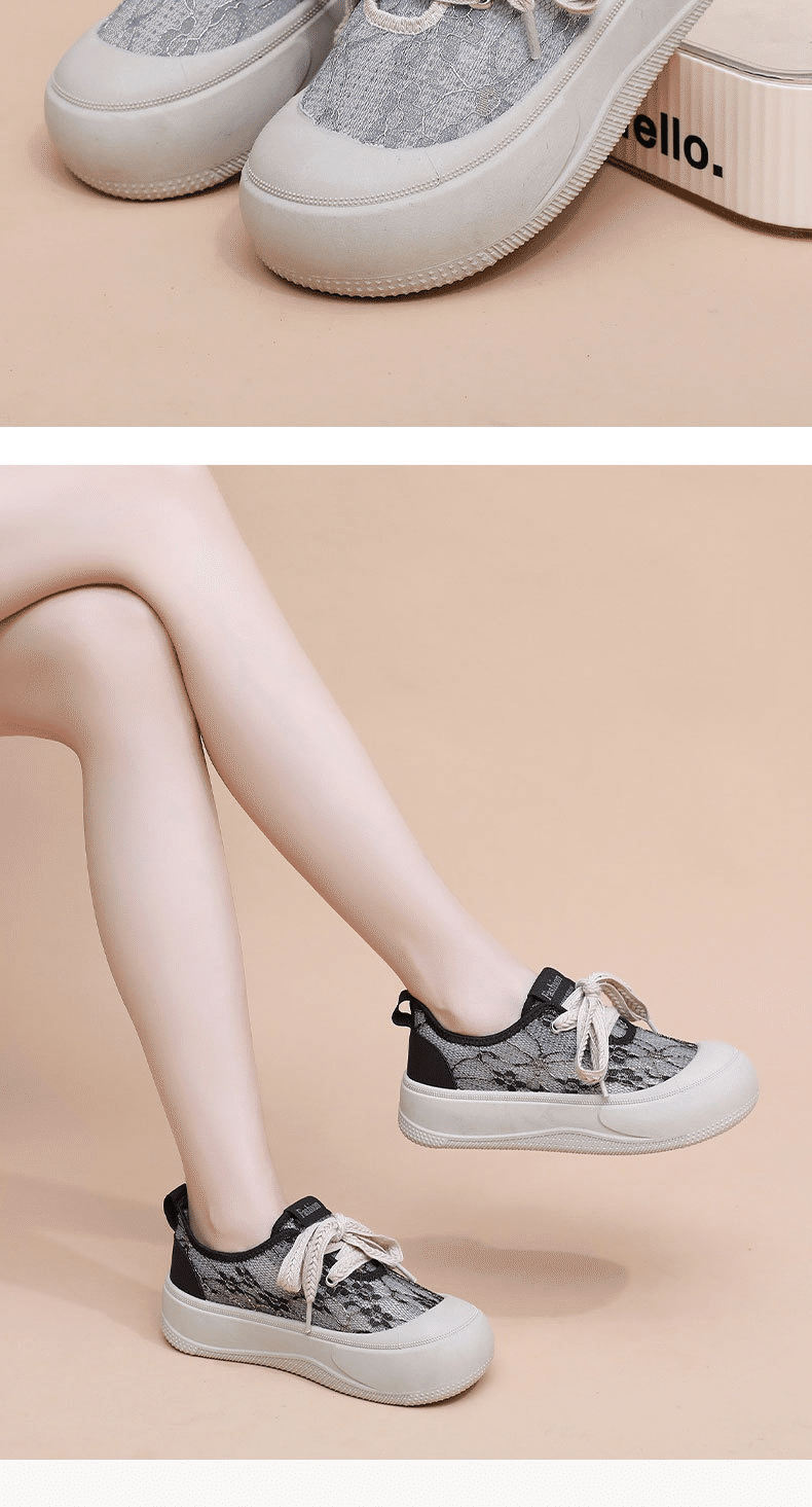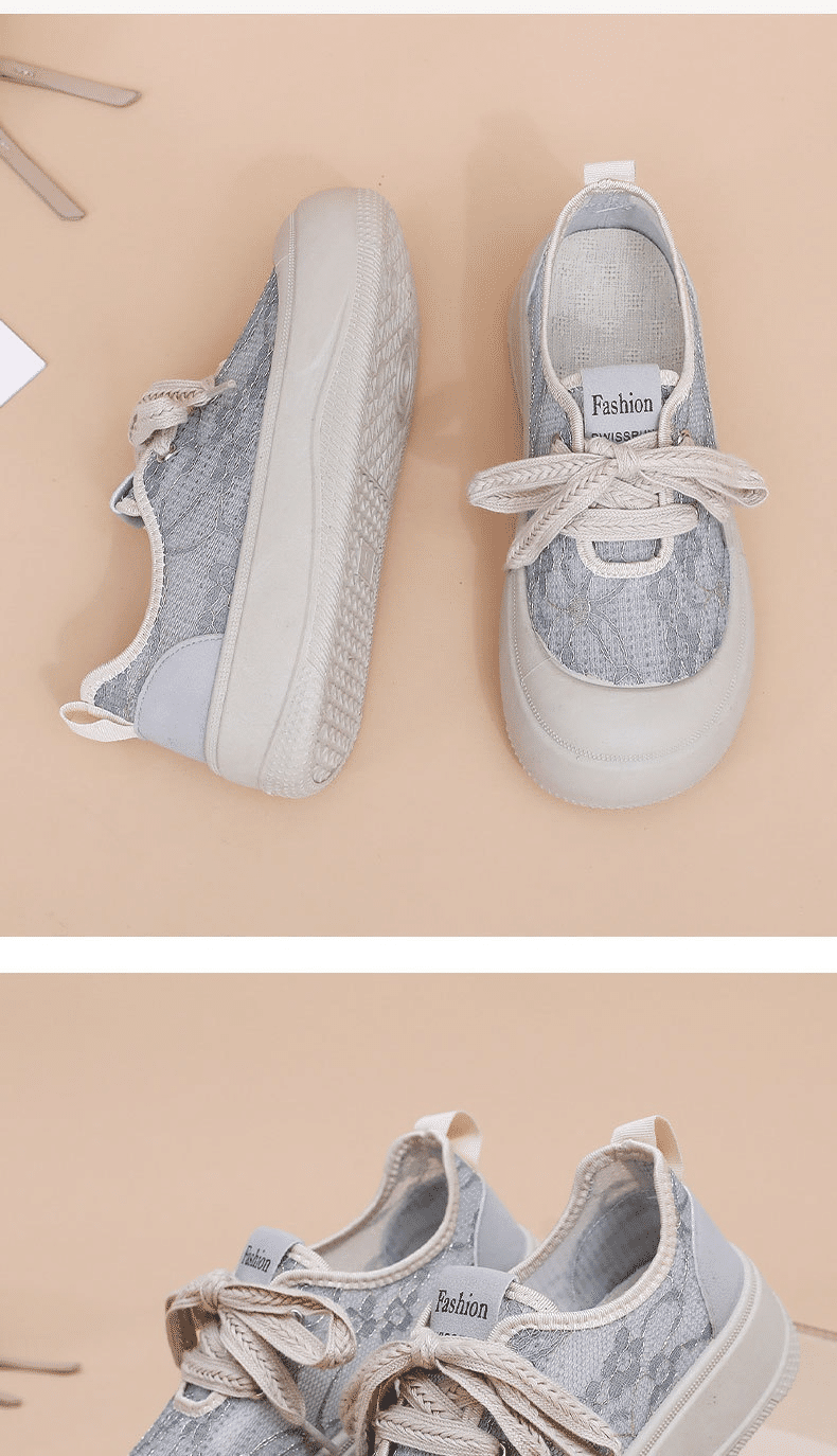 5分鐘前【買一送一】高級感百搭透氣蕾絲面厚底休閒鞋 兩雙 灰色+黑色
