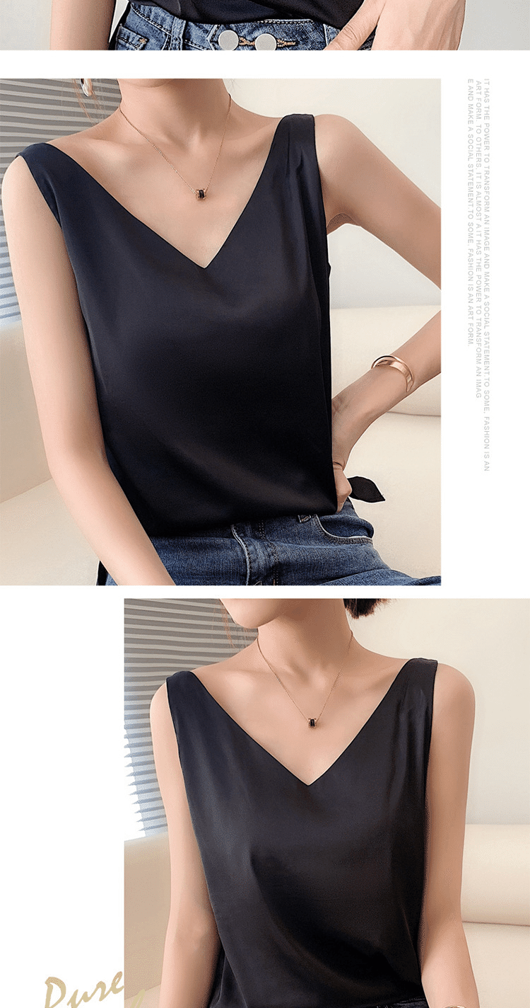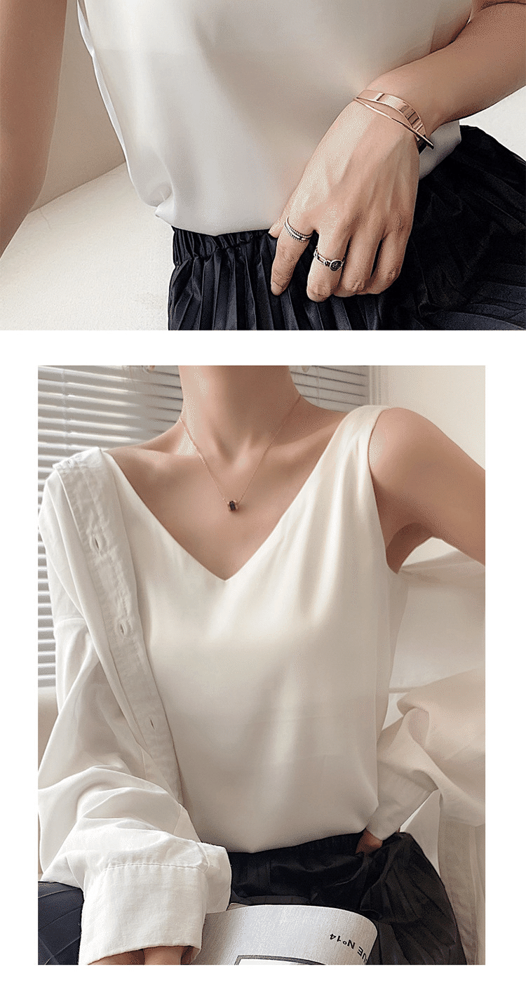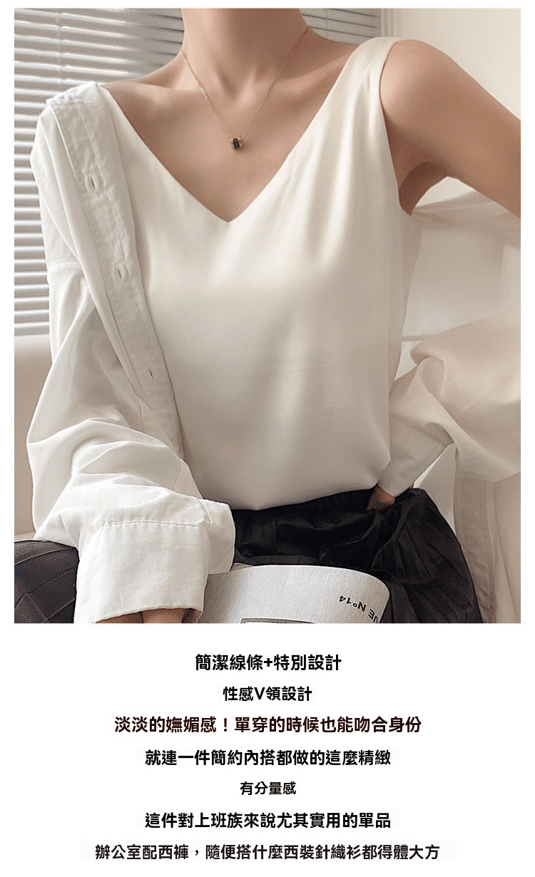 半小時前V領百搭仿真絲醋酸吊帶背心 黑色+白色+灰色
