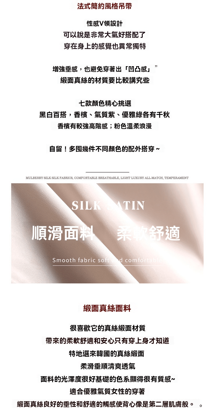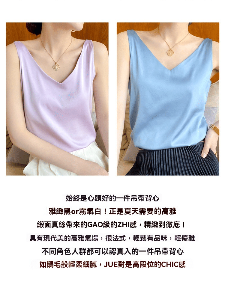 4分鐘前V領百搭仿真絲醋酸吊帶背心 香檳+墨綠+酒紅