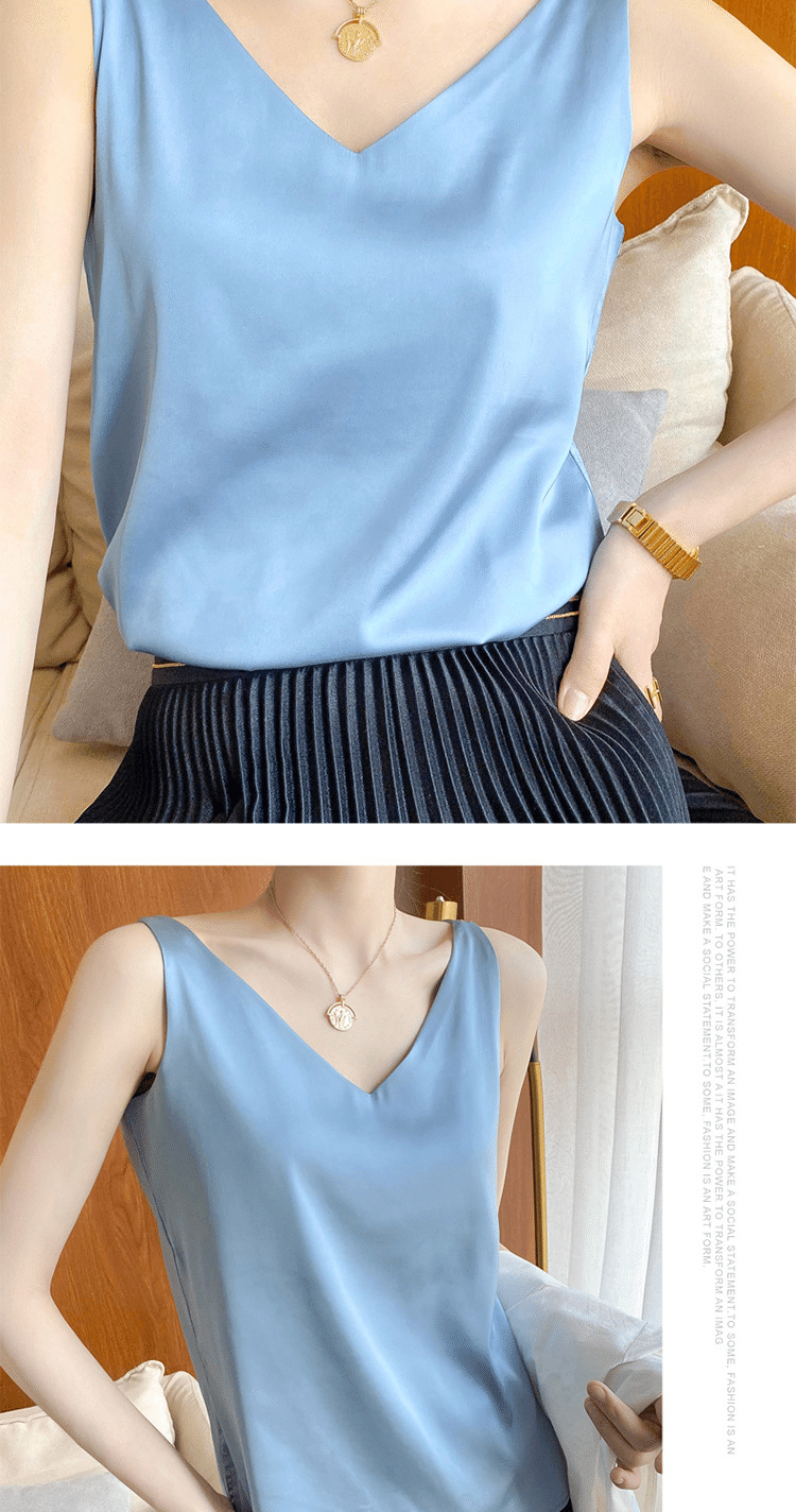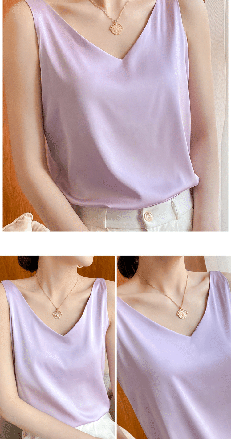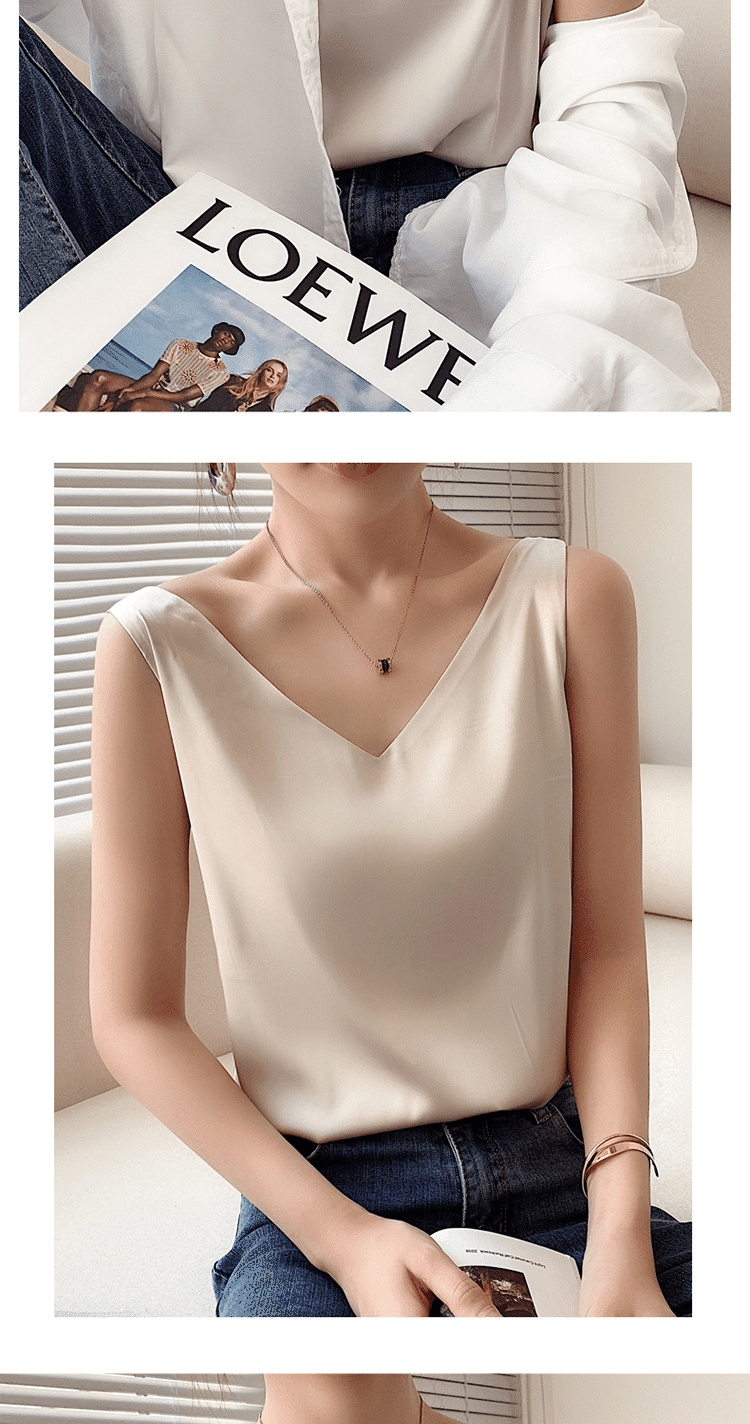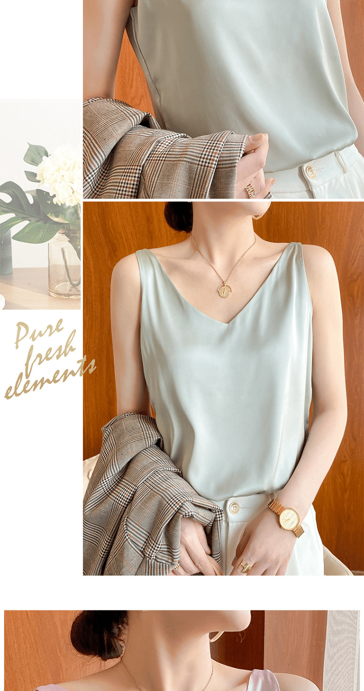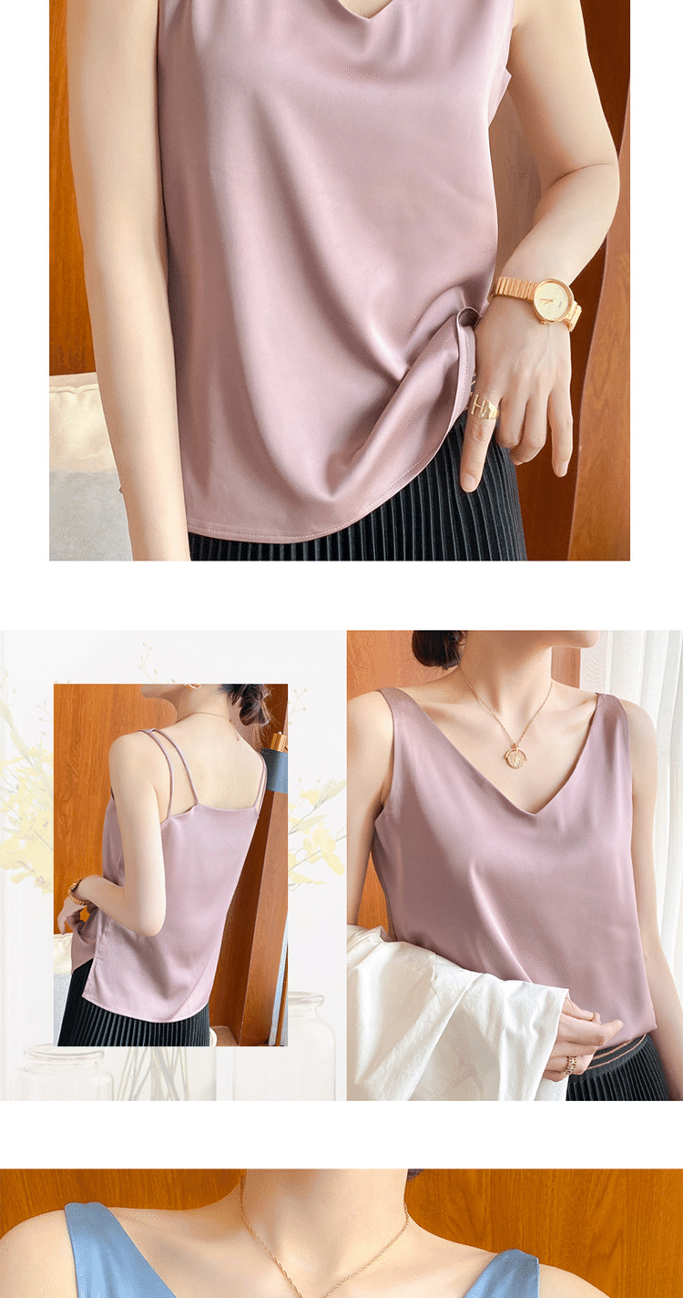 3分鐘前V領百搭仿真絲醋酸吊帶背心 香檳+墨綠+酒紅