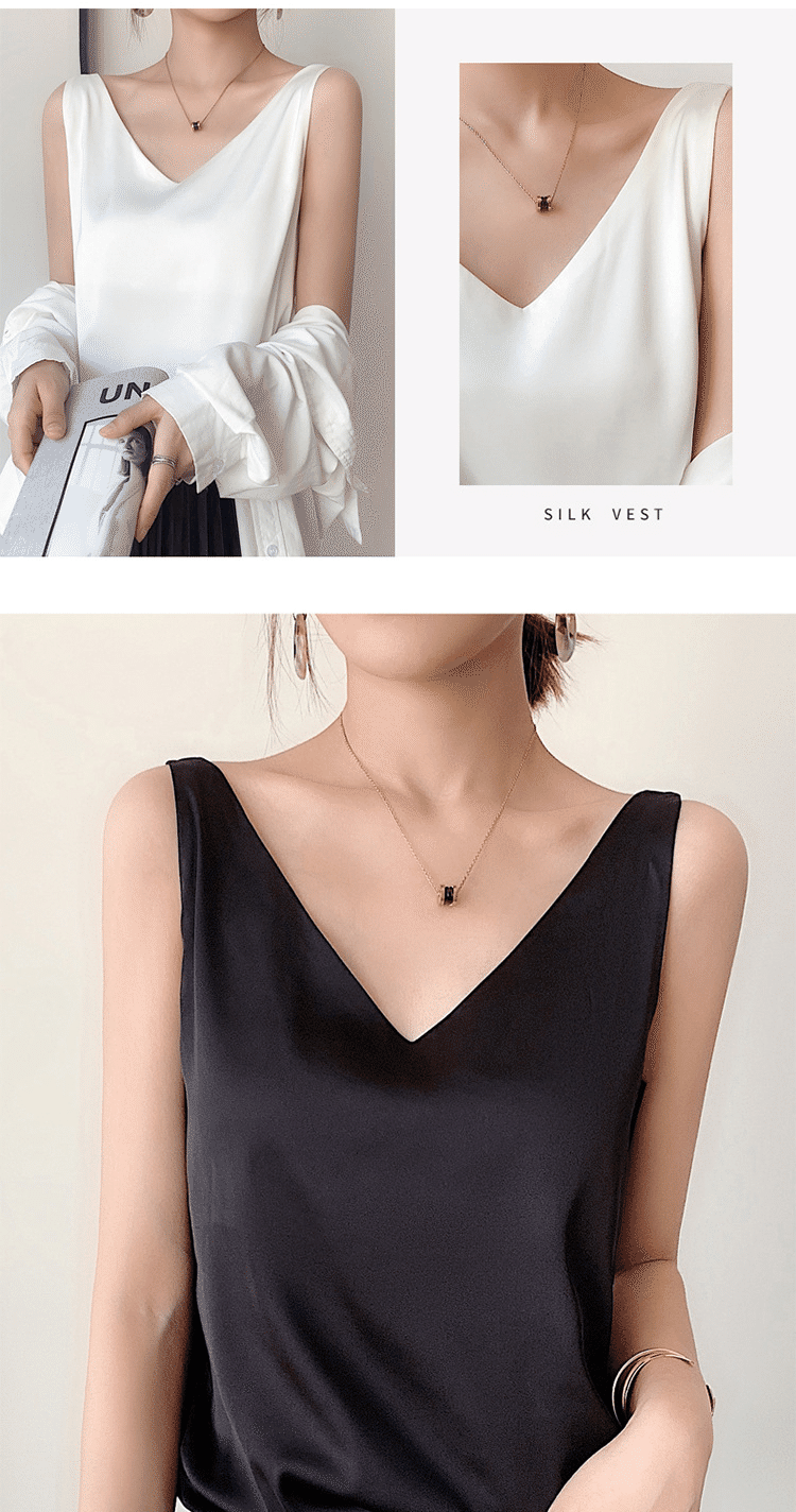 5分鐘前V領百搭仿真絲醋酸吊帶背心 黑色+白色+灰色