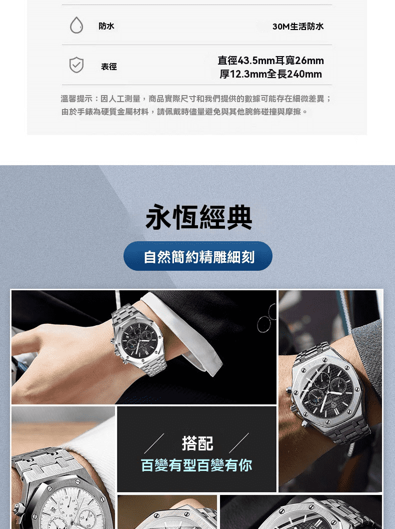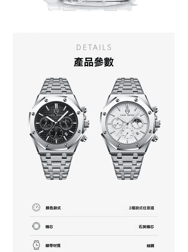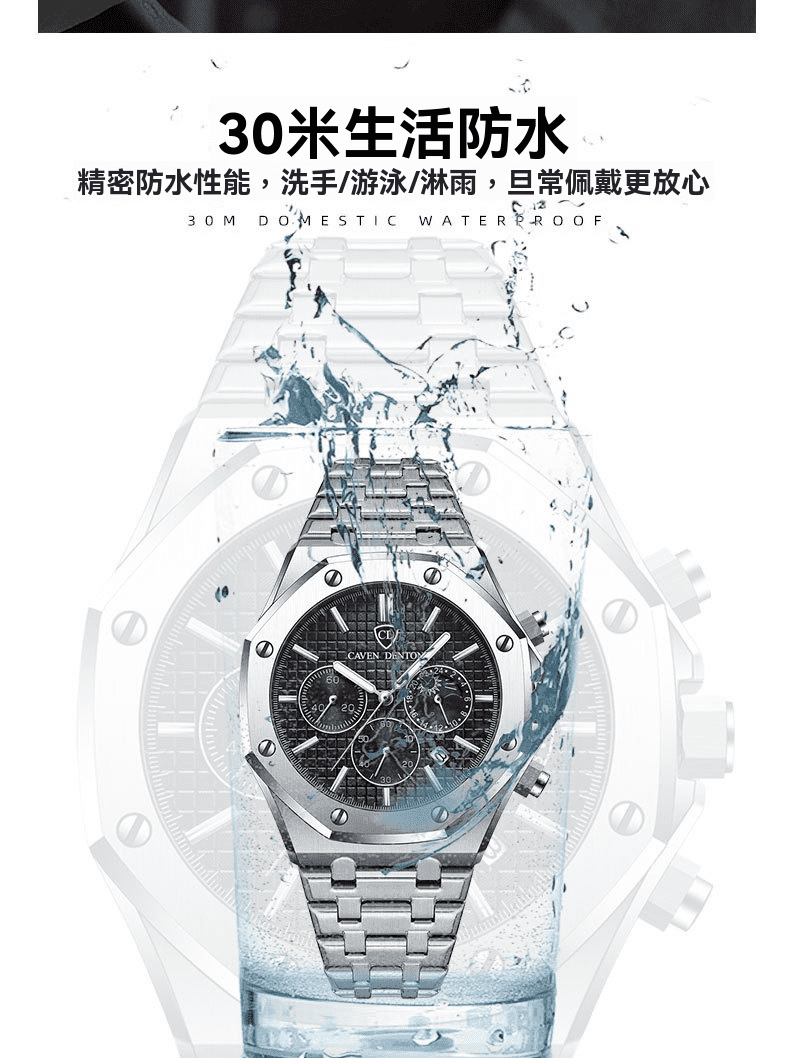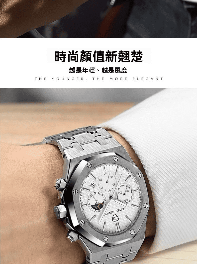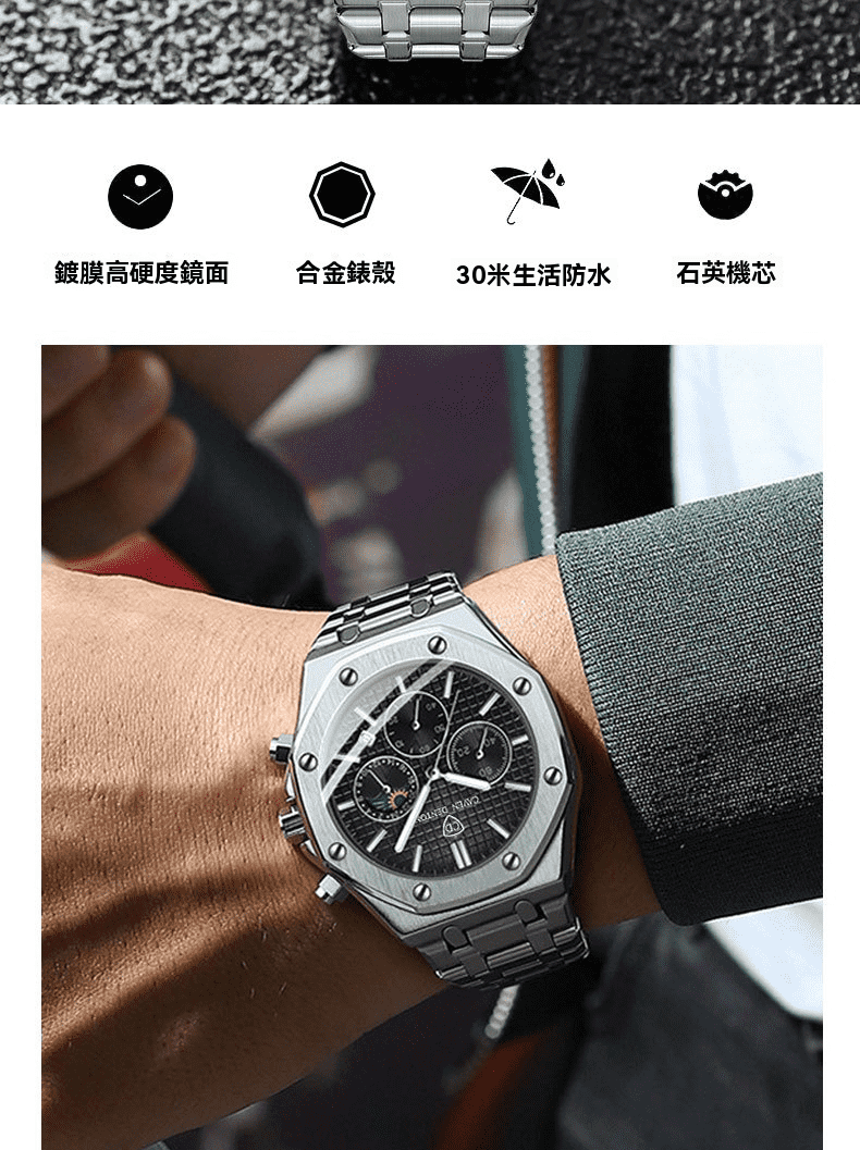3分鐘前外貿爆款男士高檔防水三眼六針月相鋼帶手錶 鋼帶白面