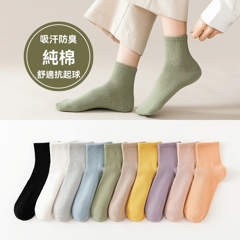 女士秋冬純棉無骨吸汗透氣中筒襪