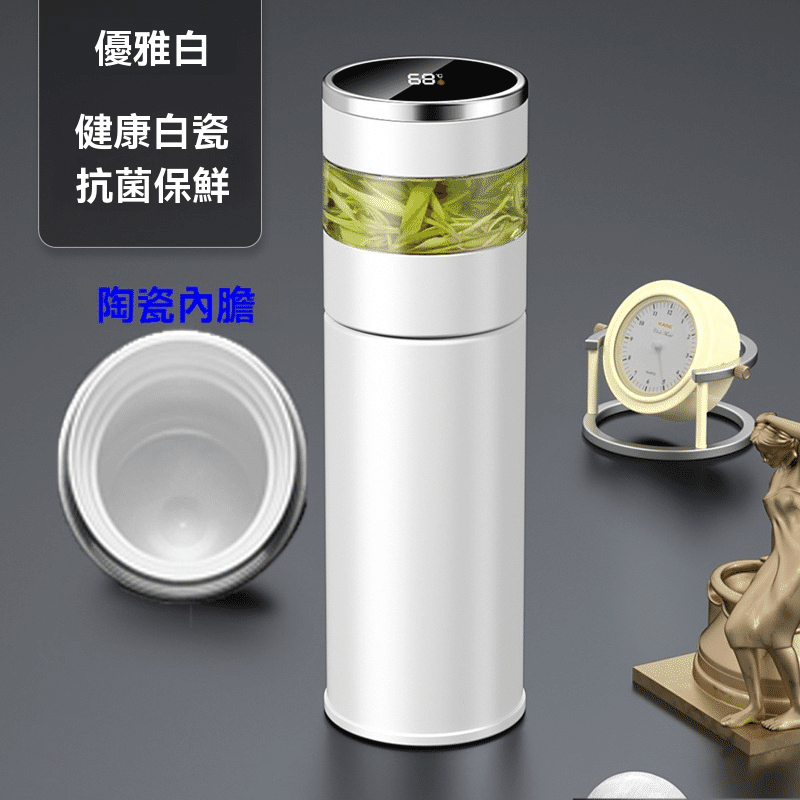 316不鏽鋼高檔陶瓷內膽茶水分離數顯保溫杯