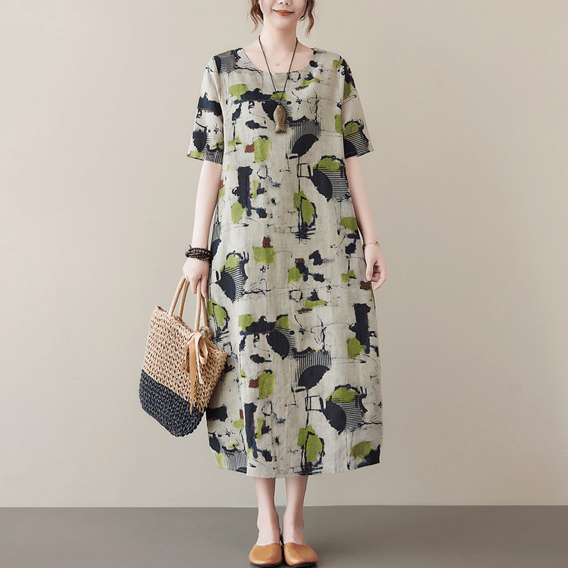 5分鐘前【2A108】2025夏季新款棉麻印花連衣裙 尺碼:2XL 2XL(建議體重63-75公斤)