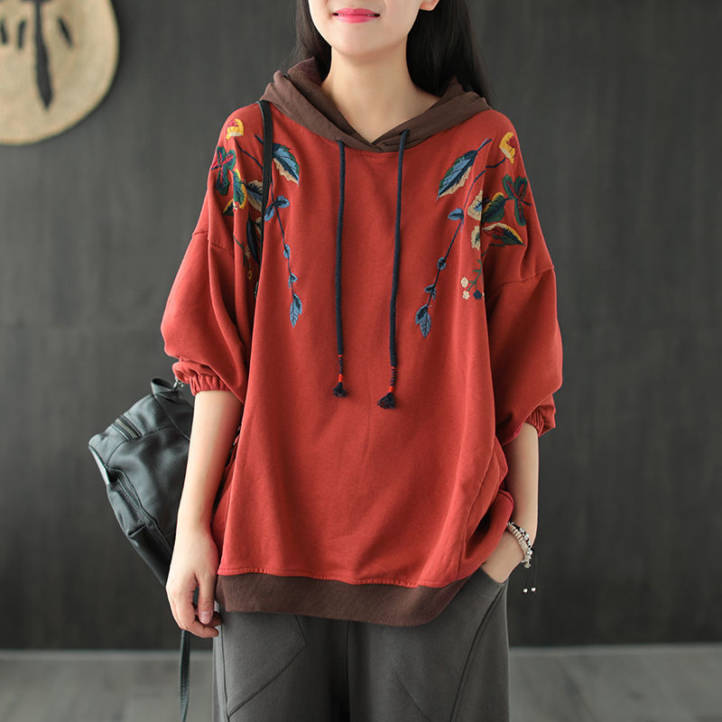1分鐘前【兩件均價590!】2025新款復古文藝寬鬆套頭休閒衛衣 兩件 橘紅色+墨綠色
