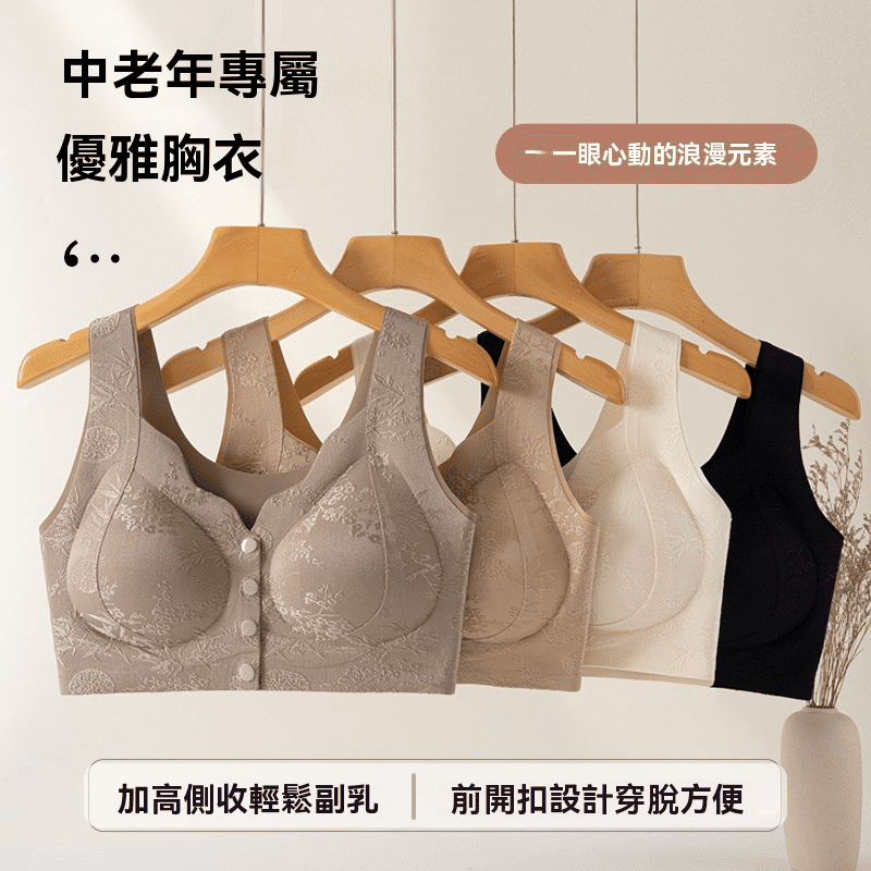 4分鐘前國風提花前開扣聚攏無痕提拉內衣 3件裝 香檳色+淺咖+黑色