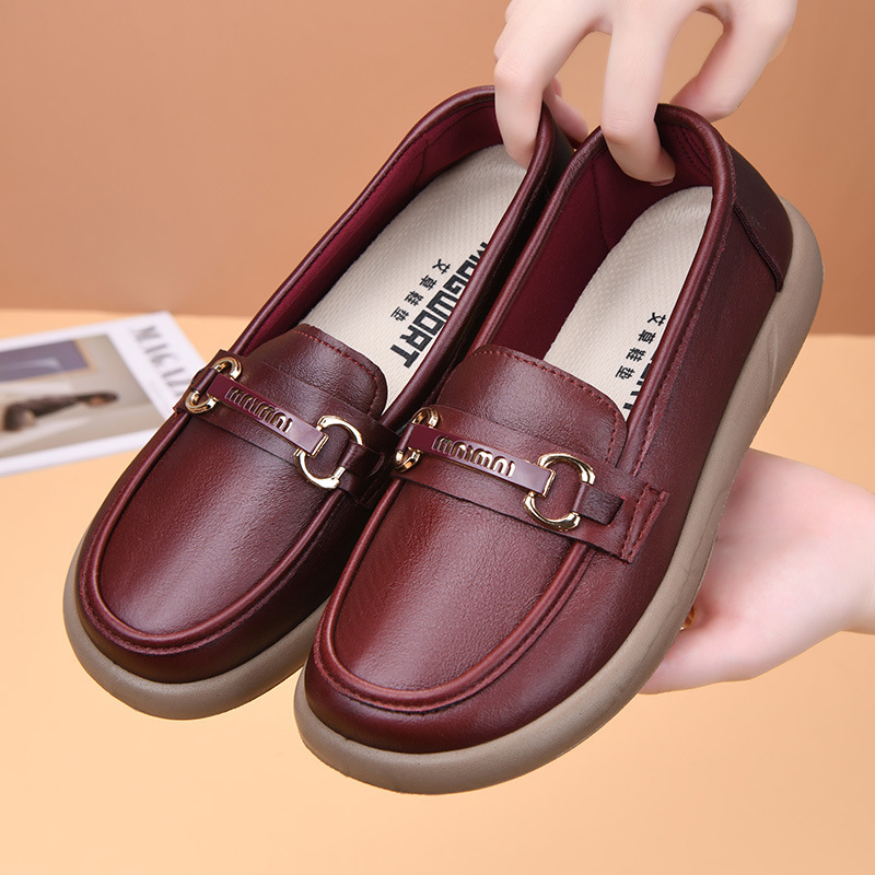 5分鐘前【再加NT$400,即可多得一雙!】2025春秋款百搭厚底軟皮樂福鞋 兩雙 黑色+酒紅色
